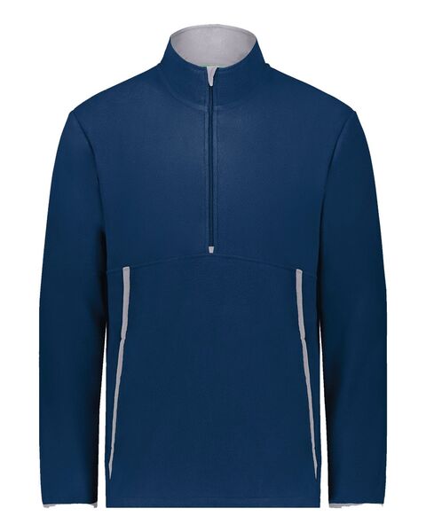 8 oz./yd_, 70/30 recycled polyester/polyester Quarter-zip with storm flap and zipper garage Front zippered pockets with spandex binding detail...