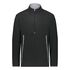 8 oz./yd_, 70/30 recycled polyester/polyester Quarter-zip with storm flap and zipper garage Front zippered pockets with spandex binding detail...