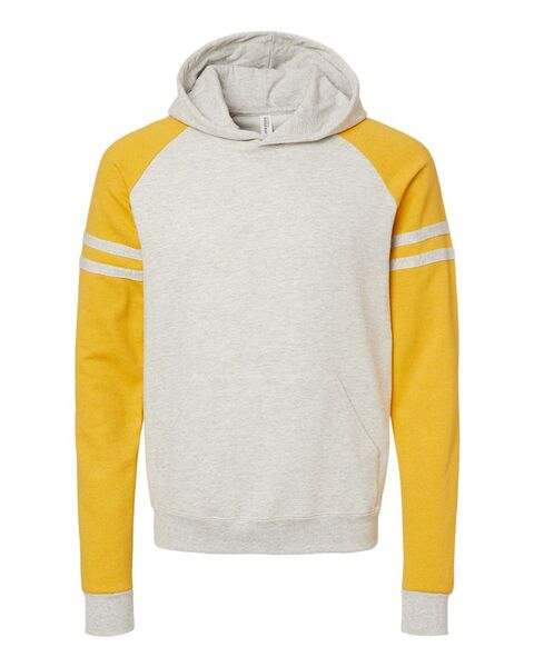 - Athletic varsity stripes on sleeves
