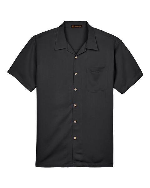 5 oz./yd_, 66/34 rayon/polyester pieced bedford cord Wrinkle-resistant Self-fabric collar Full-button front Left-chest pocket Synthetic coconut shell...