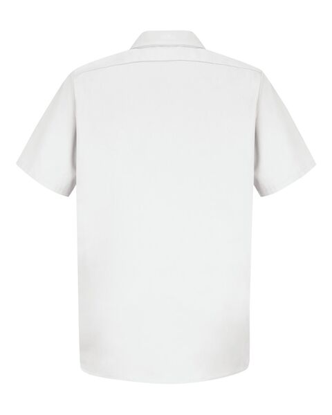 - Two button-thru, hex-style pockets with angled bartacks, bartacked pencil stall on left pocket