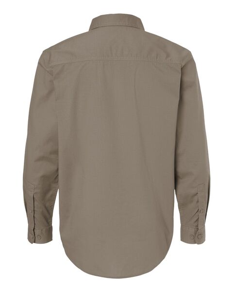 4.1 oz./yd_, 58/40/2 cotton/polyester/spandex ripstop Garment washed for comfort Triple-needle stitching to reinforce seams Button down collar Double...