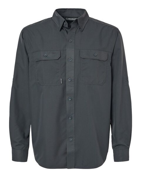 2.8 oz./yd_, 100% polyester Textured, two-tone dobby pattern UPF 50+ protection Water-resistant, DWR finish Button down collar Industrial strength...