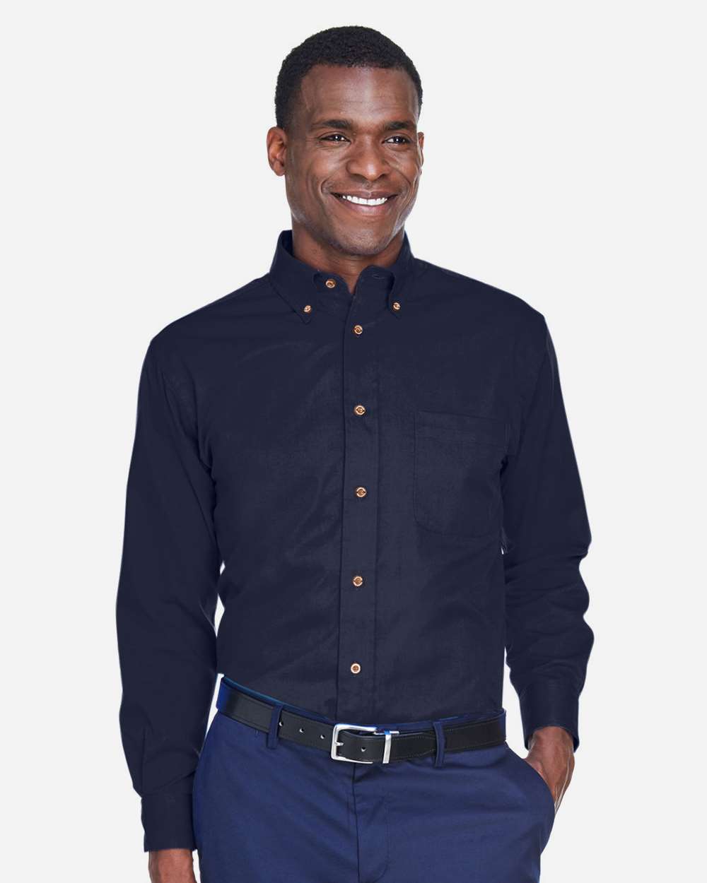 4.6 oz/yd_/155 gsm (US), 7.7 oz./L yd (CA), 55% cotton, 45% polyester twill Wrinkle-resistant and stain release fabric Button-down collar Left chest...
