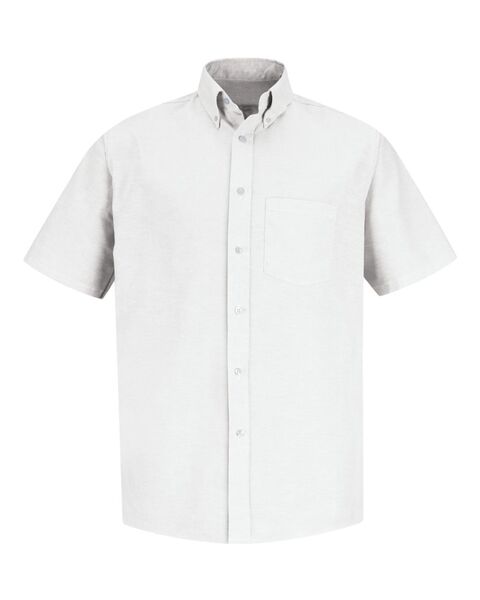 4.75 oz./yd_, 60/40 combed cotton/polyester  Easy care finish Two-piece, lined, banded, button-down collar Seven-button front Left chest pocket...