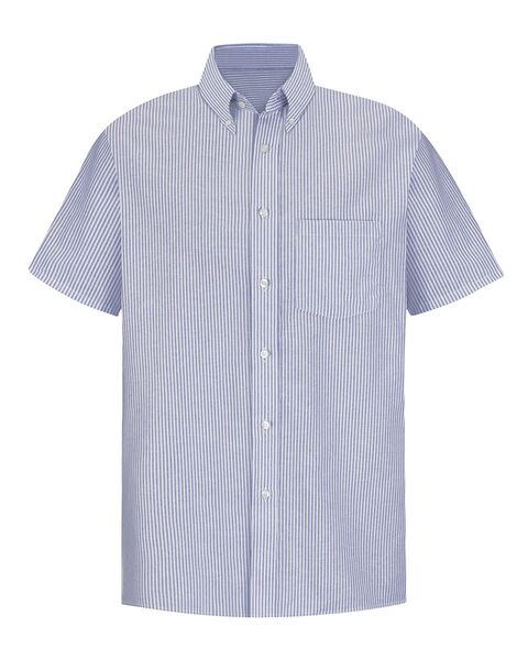 4.75 oz./yd_, 60/40 combed cotton/polyester  Easy care finish Two-piece, lined, banded, button-down collar Seven-button front Left chest pocket...