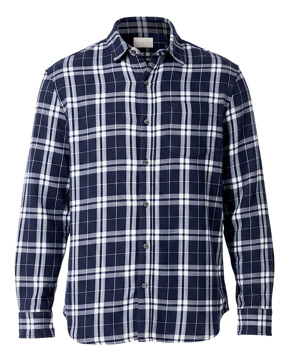4.3 oz./yd_., 100% polyester Exposed button placket Button-down collar Woven label