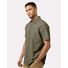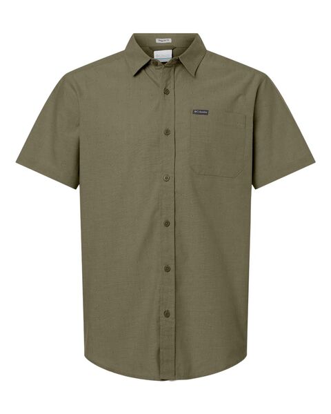 100% cotton, Diamond Dobby Chambray Chest pocket Columbia woven patch on pocket Woven label