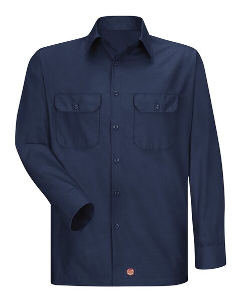 4.25 oz./yd_, 65/35 polyester/cotton ripstop Seven-button front with button-up neck pre-cure durable press with soil-release and wickable finish...