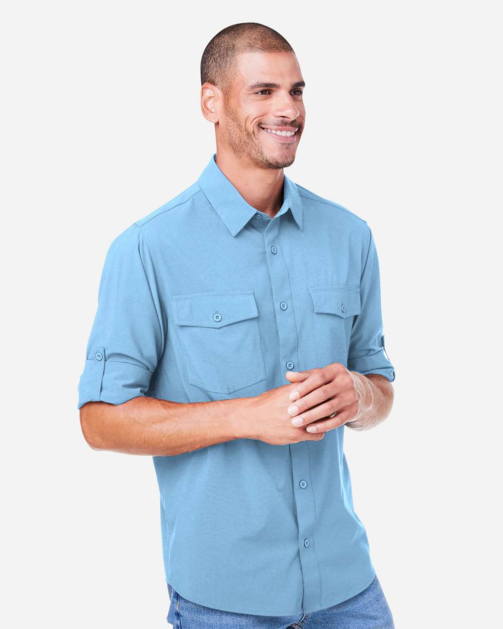 4.3 oz/yd_, 88/12 polyester/spandex ripstop 100% polyester mesh lining in upper back Quick-dry performance UPF 50+ protection Self-fabric collar with...
