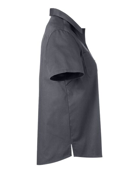 4.5 oz./yd_/155 gsm (US), 7.4 oz./L yd (CA), 55% cotton, 45% polyester twill Wrinkle-resistant finish and stain release performance Structured collar...