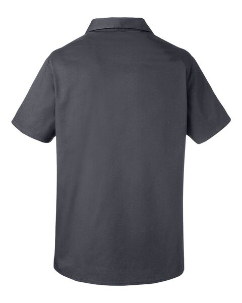4.5 oz./yd_/155 gsm (US), 7.4 oz./L yd (CA), 55% cotton, 45% polyester twill Wrinkle-resistant finish and stain release performance Structured collar...