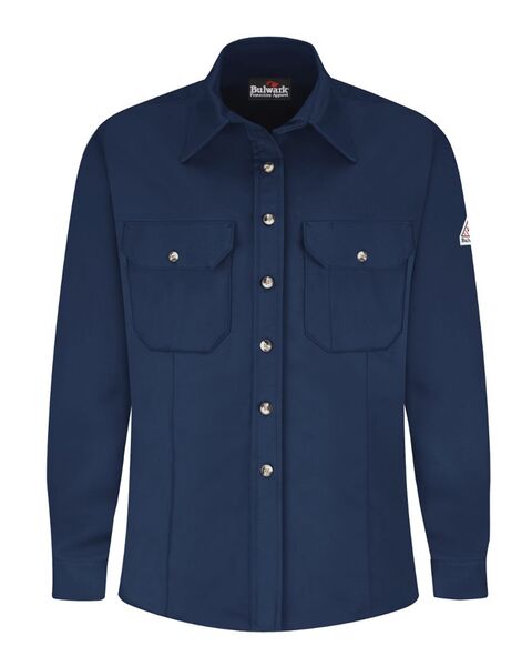 - Two chest pockets with button flap closures and sewn-in pencil stall