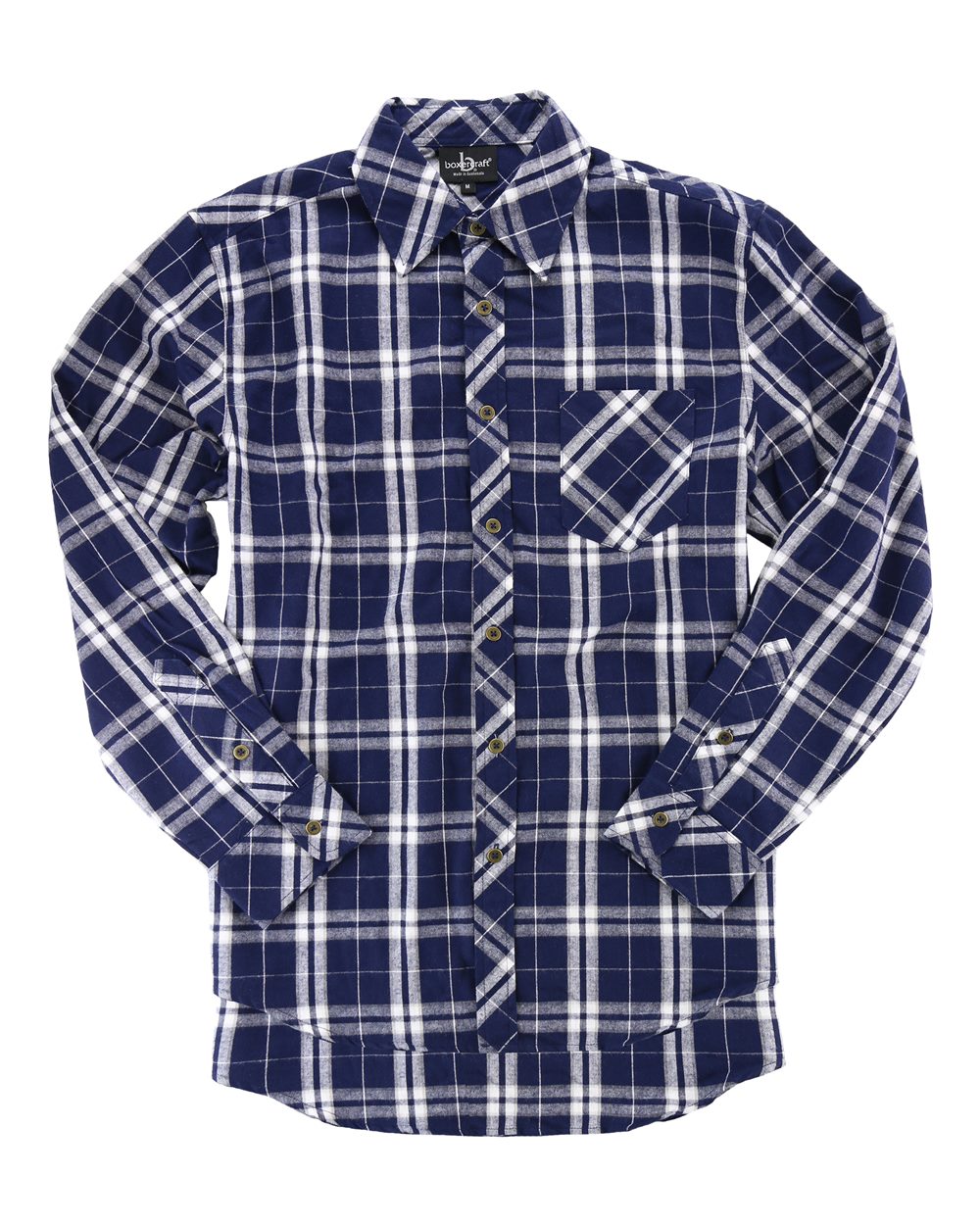 • Diagonal plaid on collar, front placket, pocket, cuffs & back yoke