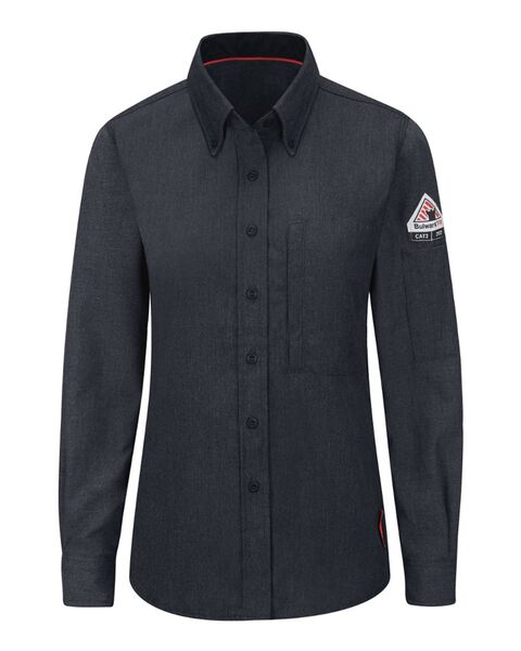 5.5 oz./yd_, 50% Aramid/ 25% Lyocell/ 25% Modacrylic - Flame-resistant Gusset side seams Banded, buttoned down topstitched collar Napoleon pocket on...