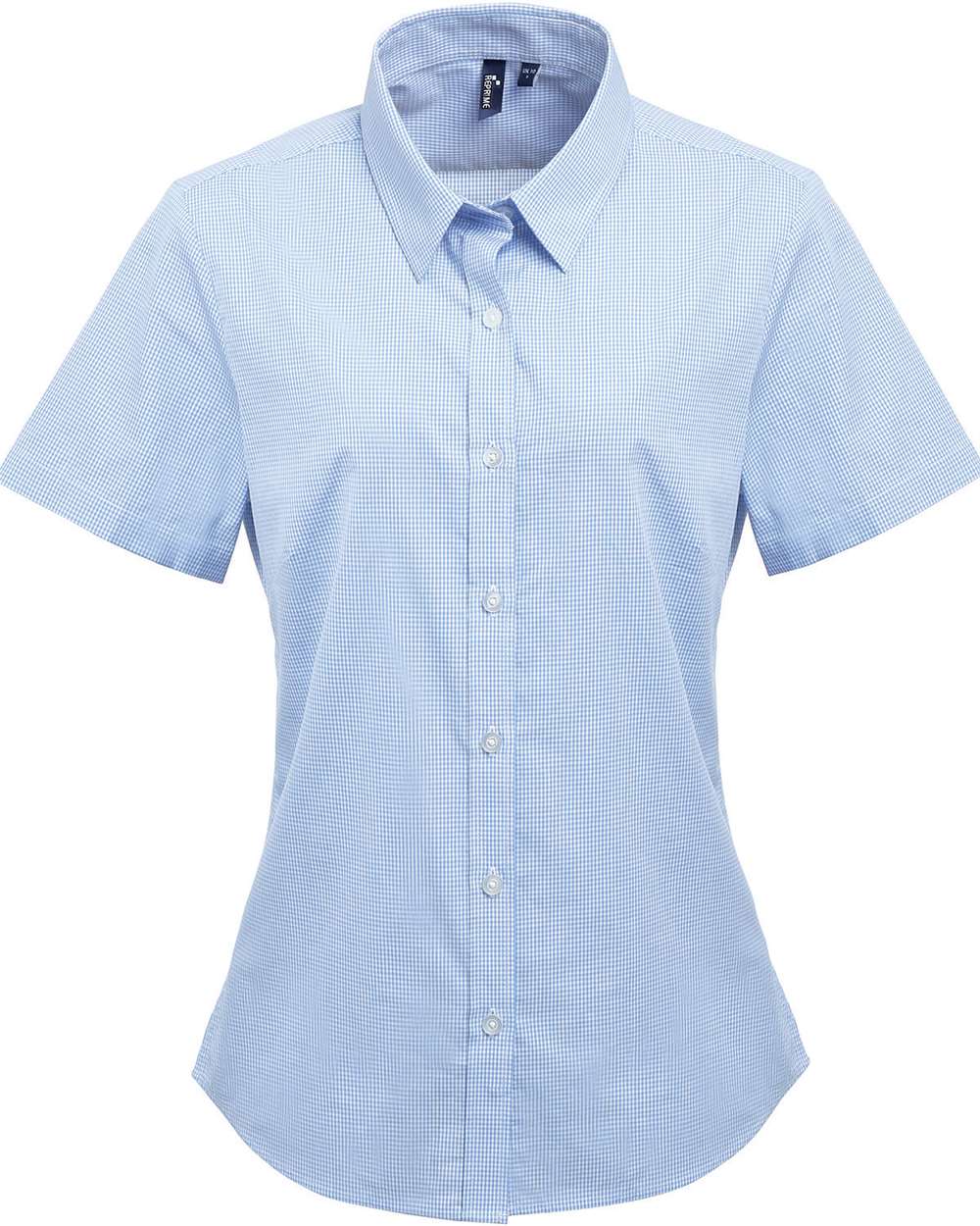 Women's Microcheck Gingham Short Sleeve Cotton Dress Shirt
