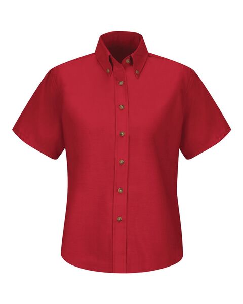 4.25 oz./yd_, poplin 65/35 polyester/cotton No pocket Seven woodtone button front Extended sizes available under style SP81EXT